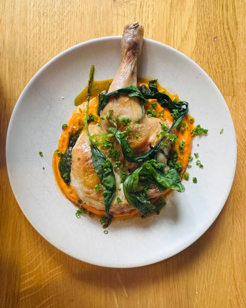 Bikt is a cute bistro that focuses on Southern European flavors, offering a seasonal menu that evolves to highlight fresh ingredients and Mediterranean influences. The space is stylish and cozy with outdoor seating options. We stopped here for lunch, and I tried the cod fillet. It was beautifully plated over potatoes and topped with fresh vegetables and herbs.